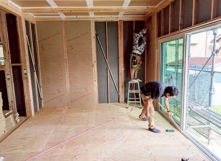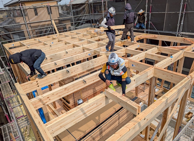 ハウスメーカーさまからご依頼をいただき、上棟から完成まで、戸建て住宅の建築全般を手掛けています。また、内装工事も対応できます。